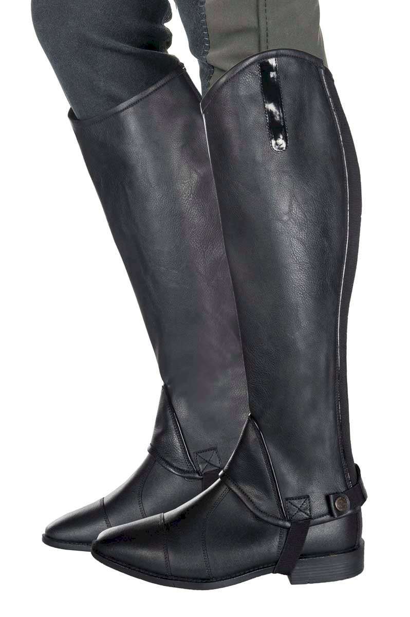 Miękkie czapsy HKM Elastik wykonano z doskonałej imitacji skóry. Miękkie i elastyczne czapsy ze skóry syntetycznej, łatwe do czyszczenia. Ładnie dopasowują się do łydki dzięki właściwościom materiału, z którego zostały wykonane oraz gumowej wstawce z tyłu czapsa.