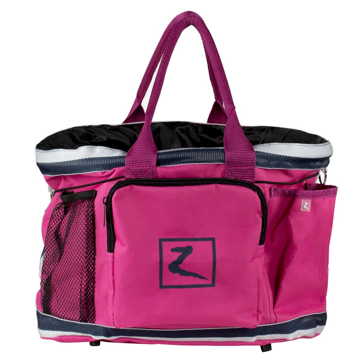 Torba została uszyta z wytrzymałego materiału, więc doskonale sprawdzi się podczas codziennych wizyt w stajni. Skutecznie ochroni sprzęt przed brudem i masz pewność, że wszystkie szczotki są w zasięgu ręki. Mocna gumka, która poprowadzona jest wokół torby pozwoli zabezpieczyć butelki lub inne wysokie przedmioty przed przypadkowym wypadnięciem. Torbę można prać, więc łatwo utrzymasz ją w czystości. Pasek na ramię ułatwia przenoszenie, zwłaszcza gdy wypełnisz torbę skarbami :-)