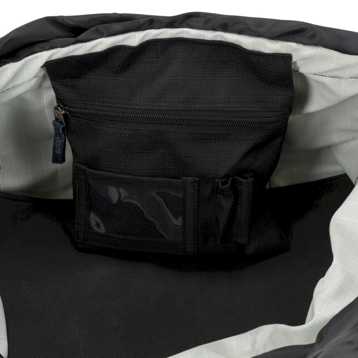 - wewnątrz mała kieszeń na zamek z plastikowym elementem na karty i szlufkami na długopisy