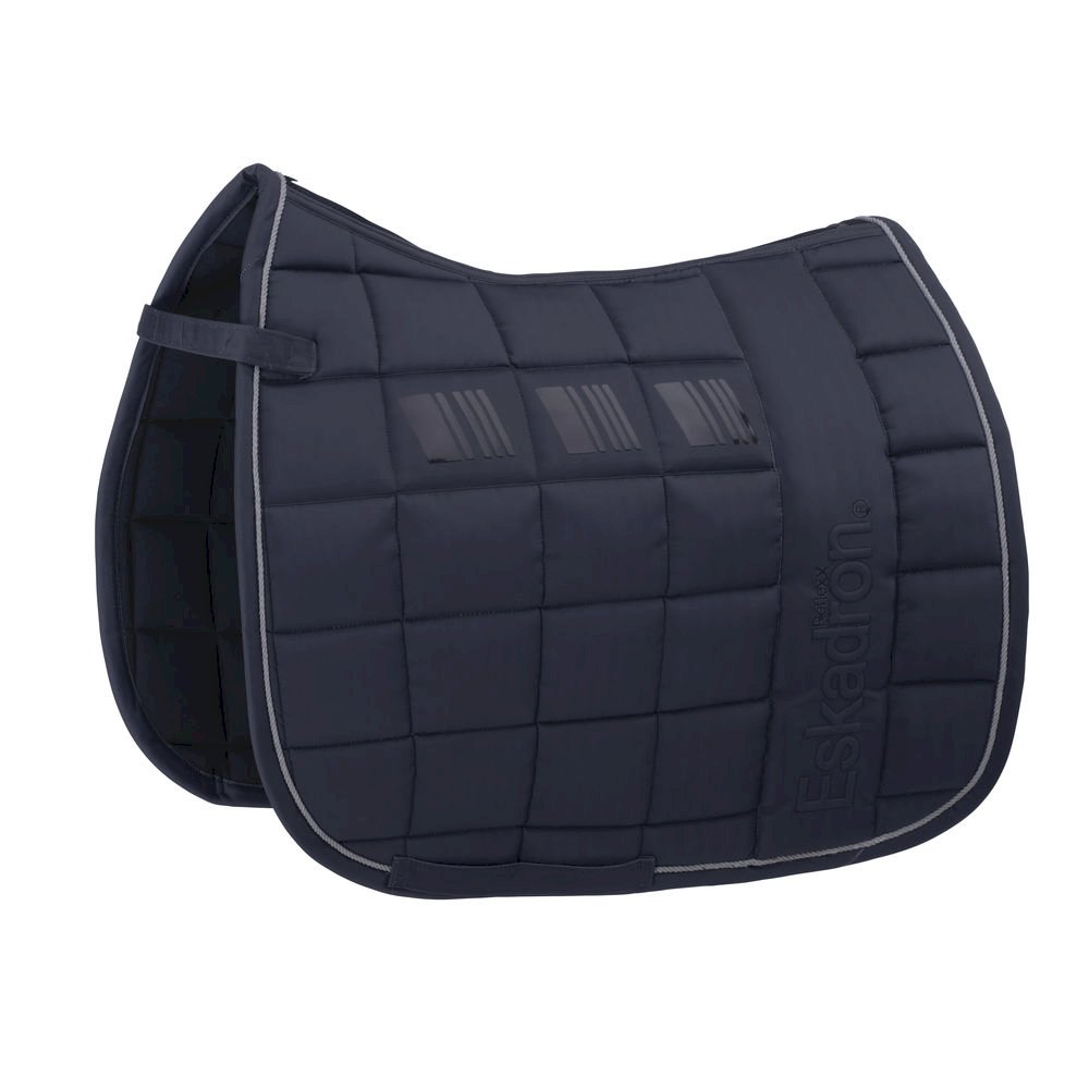 Czaprak z nowej kolekcji Eskadron Reflexx pokryty na zewnątrz materiałem technicznym softshell. Konstrukcja czapraka sprawia, że jest on od wewnątrz suchy i zapewnia dobre chłodzenie grzbietu konia. Posiada grubą warstę wypełnienia dobrze amortyzującą wstrząsy i chłonącą wilgoć, jednakże nie blokująca przepływu powietrza. Na zewnątrz czaprak posiada pionowe paski wykonane z materiału anypoślizgowego oraz pionowo umieszczone Logo 3D Eskadron na bokach. Czapraki Big Square charakteryzują się przeszyciami w formie dużych kwadratów. Czaprak został obszyty kontrastującą lamówką.