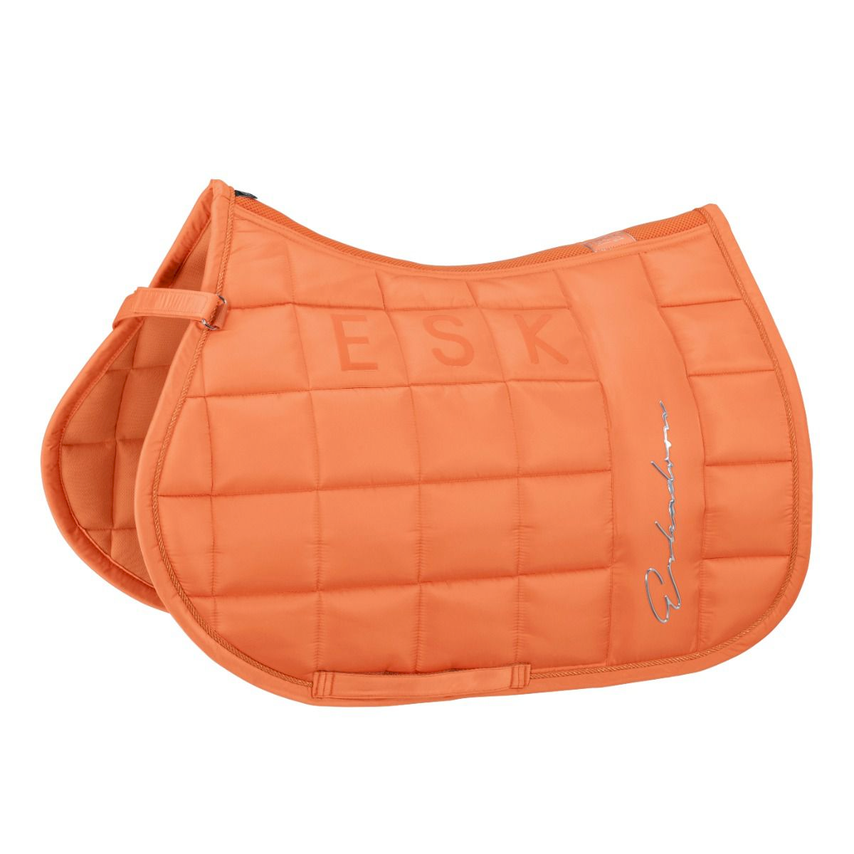 Czaprak Eskadron Big Square Mattgloss ozdobiono metalicznym napisem Eskadron po obu stronach, a połyskujący sznurek przy lamówce dodaje subtelnej elegancji.