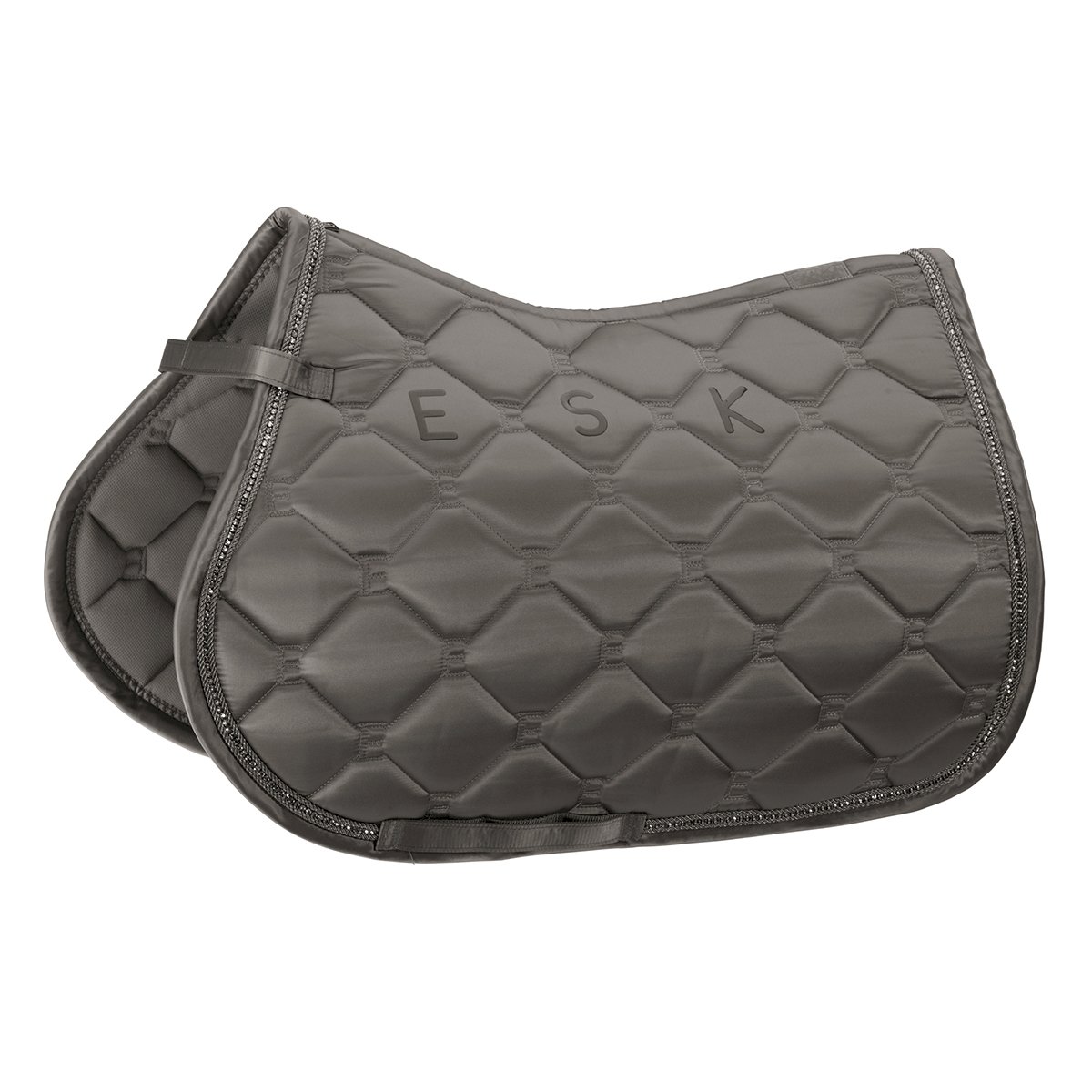 Gruby czaprak z lekko błyszczącego materiału z ozdobnym wypukłym napisem ESKADRON. Czaprak ozdobiono dookoła kryształkami. W górnej części czapraka umieszczono silikonowy nadruk ESK dla stabilizacji siodła, żeby się nie przesuwało.