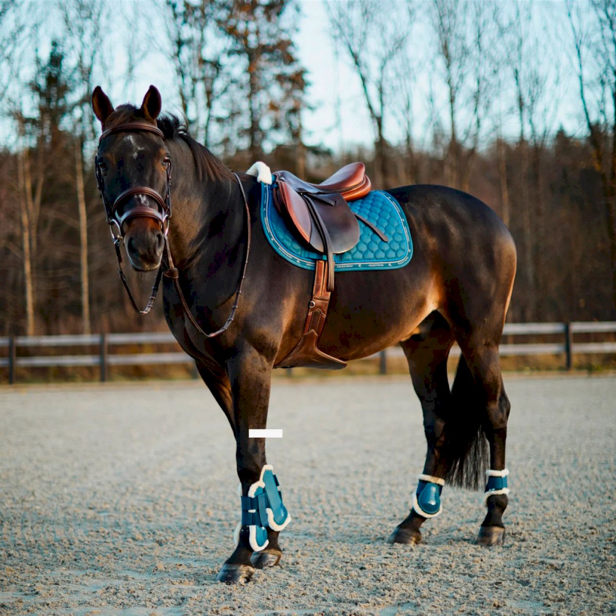 Luksusowy czaprak Claremont ozdobiony elegancką podwójną lamówką ze sznurka.