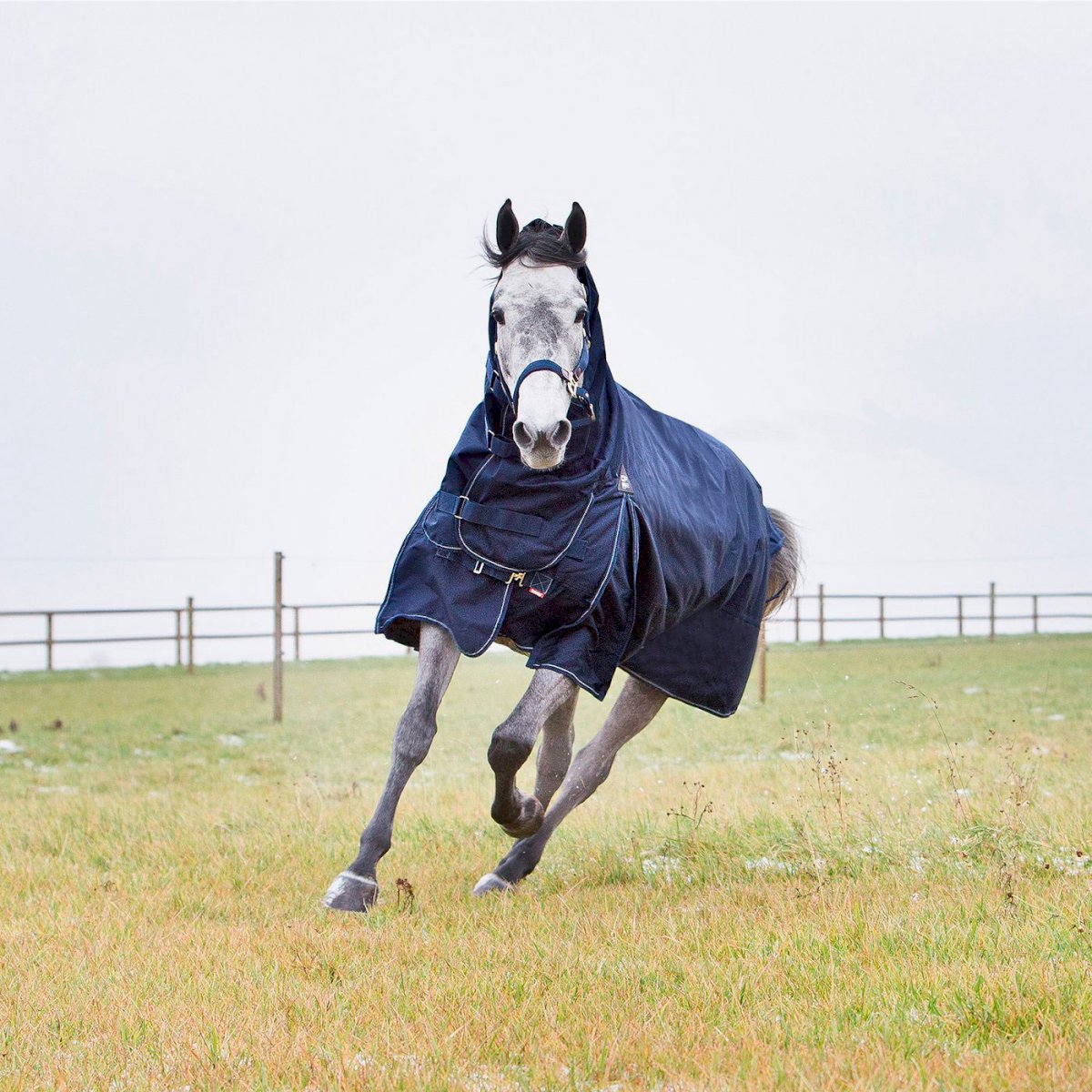Derka padokowa Horze Avalanche z kapturem i wypełnieniem 150g to idealna opcja na łagodniejsze zimowe dni, zapewniając odpowiednią ochronę przed zimnem, deszczem i wiatrem. Dzięki średniej grubości, derka jest odpowiednia dla koni, które nie są ogolone, lub na zimę, która nie jest wyjątkowo mroźna. Wodoodporna warstwa wierzchnia skutecznie chroni konia przed deszczem, a jednocześnie wiatroodporność zapewnia komfort w wietrzne dni.