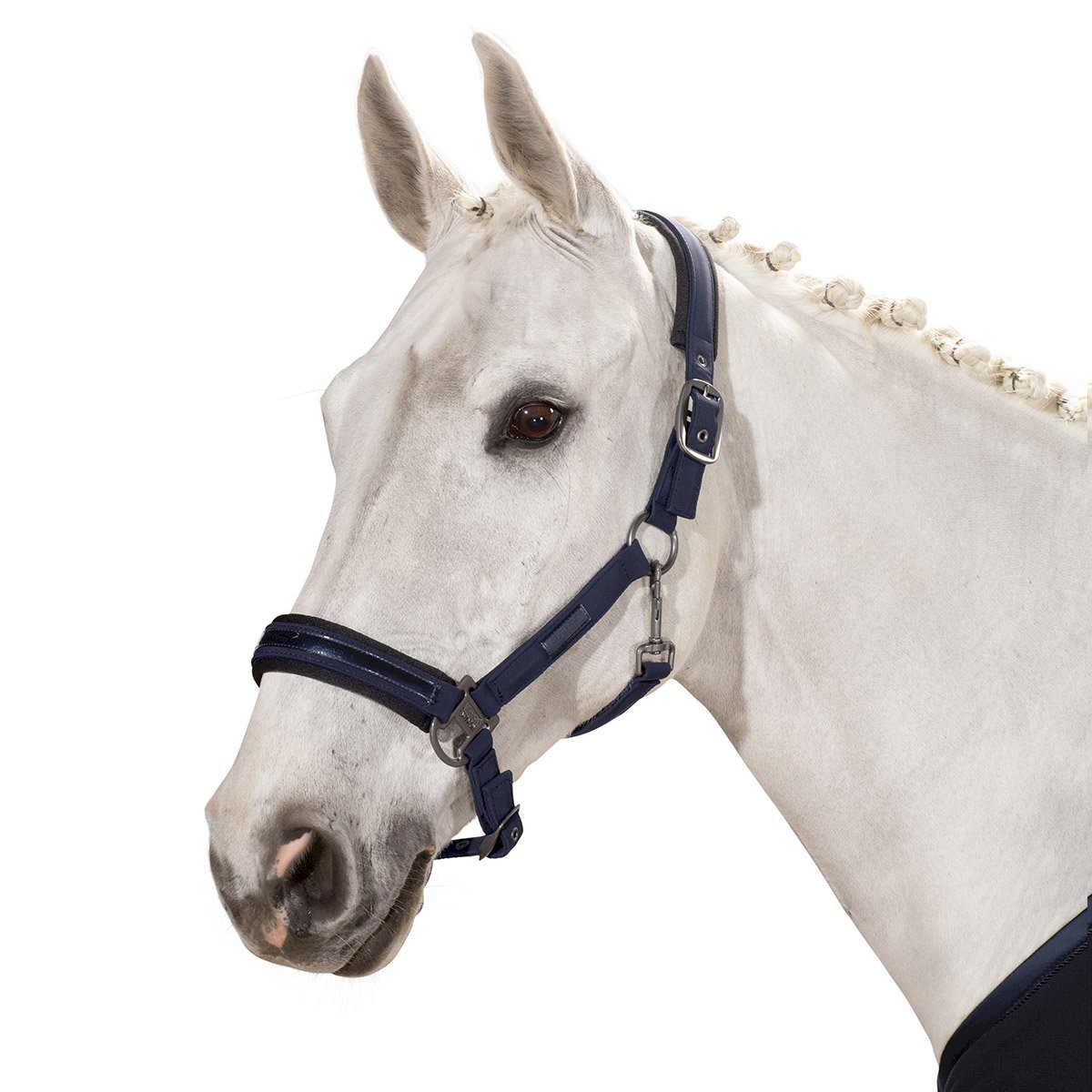 Bardzo ładny kantar Eskadron Doublepin Softshell z miękkiego materiału w kolorze granatowym i szerokim zakresie regulacji dzięki podwójnym sprzączkom.