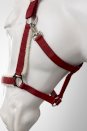 Ten kantar jest czerwony i wykończony białym podszyciem. W sam raz na Gwiazdkę! Miękkie sztuczne futerko na nachrapniku, pasku potylicznym i paskach policzkowych.
