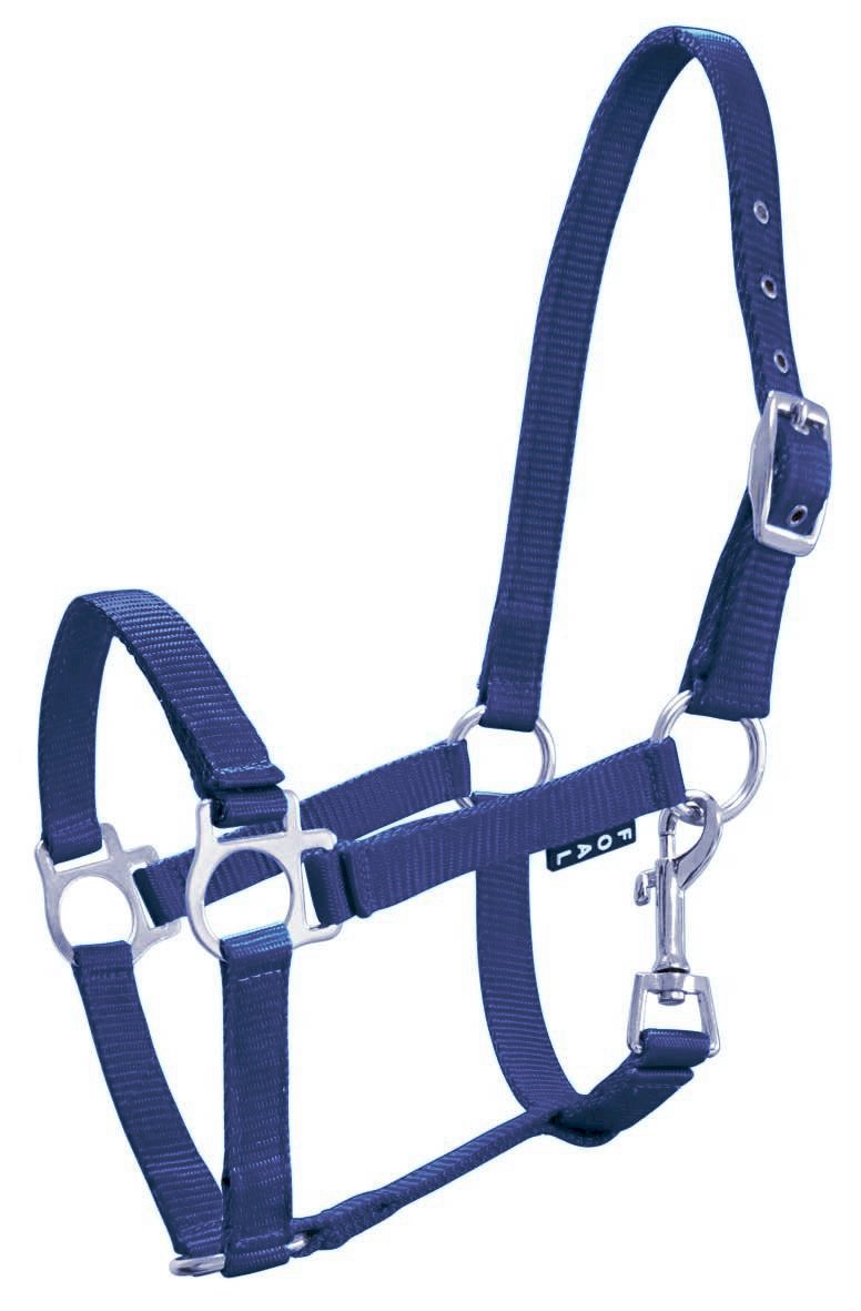 Kantar dla źrebaków wykonany z miłej w dotyku taśmy parcianej. Regulacja rozmiaru kantara na pasku potylicznym.