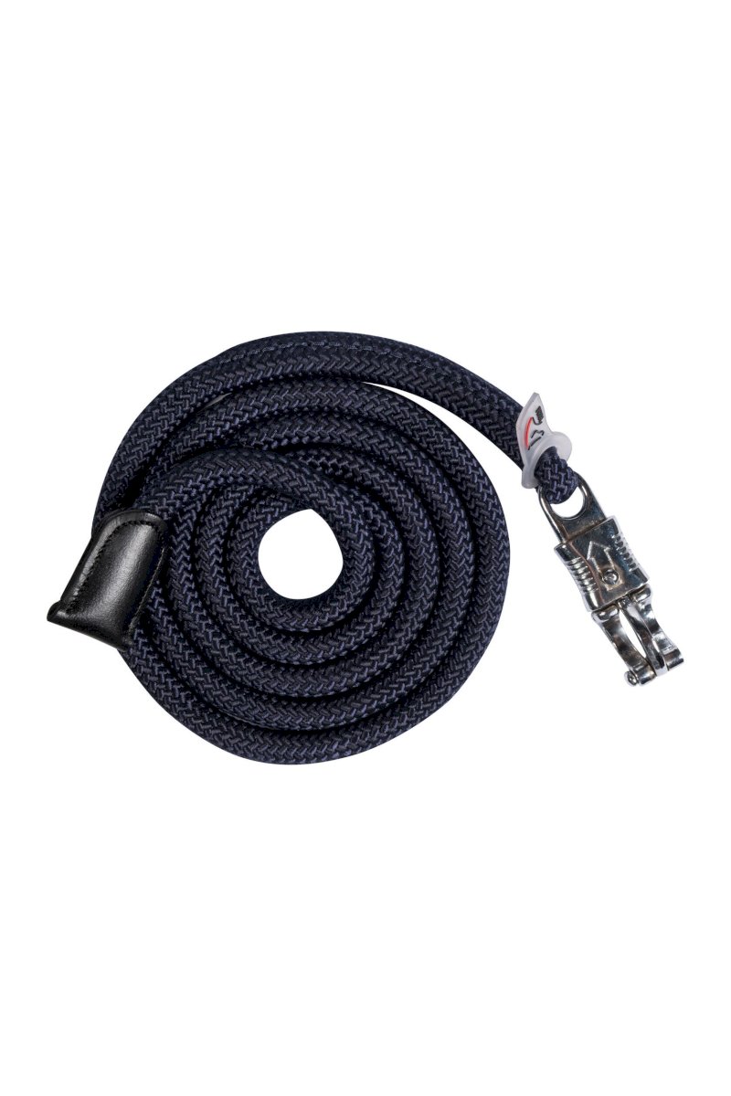 Uwiąz do wiązania i prowadzenia koni. Eleganckie skórzane zakończenie liny zapobiega strzępieniu się oraz ładnie wygląda. Dobrej jakości lina nie ślizga się w dłoni. Posiada zapięcie na bezpieczny karabinek.