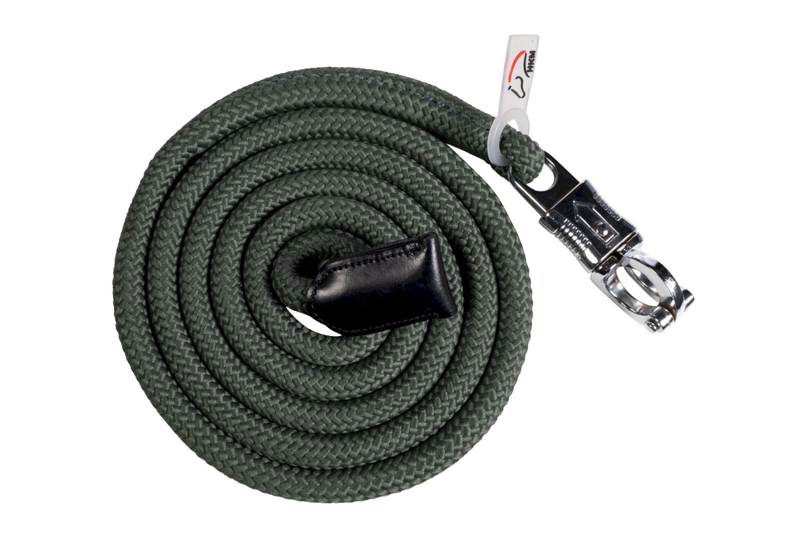 Uwiąz do wiązania i prowadzenia koni. Eleganckie skórzane zakończenie liny zapobiega strzępieniu się oraz ładnie wygląda. Dobrej jakości lina nie ślizga się w dłoni. Posiada zapięcie na bezpieczny karabinek.