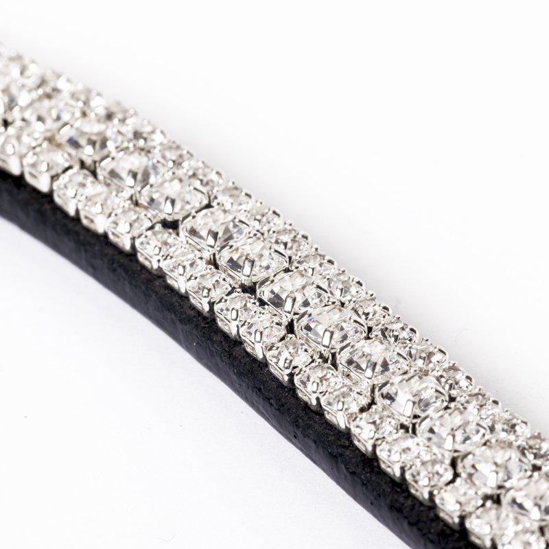 Naczółek skórzany Kavalkade Princess, czarny/białe kryształki