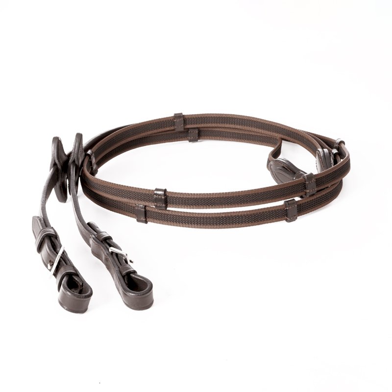 Gumowane wodze Kavalkade zapewniają pewny chwyt w dłoni i dobrze sprawdzają się w codziennej jeździe. Skórzane wykończenie nadaje im estetyczny, klasyczny wygląd, a marka Kavalkade jest ceniona za wysoką jakość skóry i staranne wykonanie.