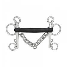 Pelham prosty z gumowym ścięgierzem. Łańcuszek wykonany ze stali nierdzewnej. Powinno się używać razem z paskami do pelhamu.