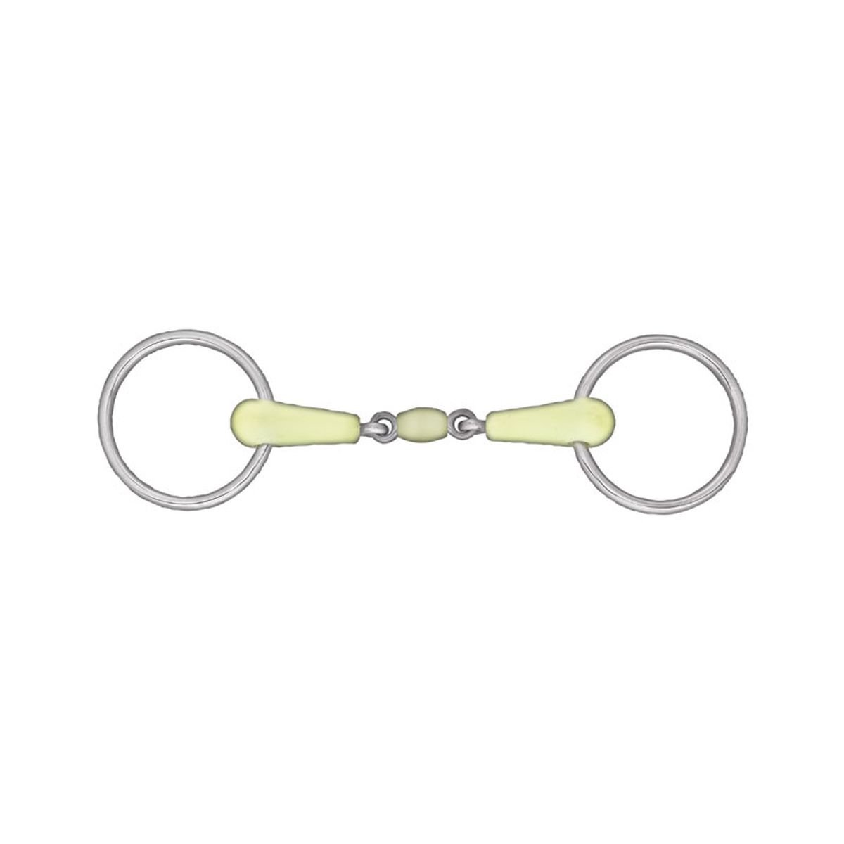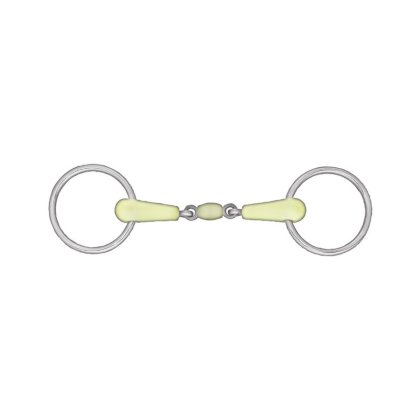 Wędzidło podwójnie łamane wykonane z plastiku o smaku jabłkowym.
