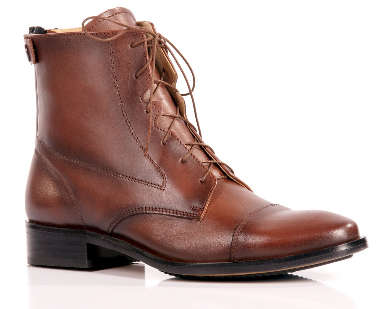 Trzewiki Hippica - krótkie buty do jazdy konnej wykonane z wysokiej jakości skóry, wiązane na elastyczną sznurówkę i zapinane z tyłu na zamek.. Trzewiki ze sznurówkami umożliwiają idealne dopasowanie buta do nogi. W zimne dni można założyć grubszą skarpetkę dopasować buta sznurówkami i wciąż będzie idealnie pasował. Zamek z tyłu buta daje możliwość bezproblemowego zakładania i zdejmowania bez potrzeby ciągłego rozwiązywania sznurówek. Buta regulujesz sznurówkami do nogi a ściągasz i zakładasz przy użyciu zamka z tyłu. Dodatkowo zamek został zabezpieczony zapięciem z napem co zapobiega samoczynnemu otwieraniu się zamka.