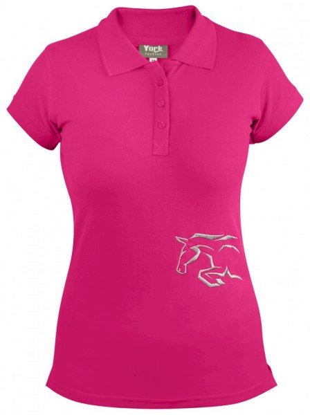Koszulka York Alice Jumping, różowa. Koszulka polo z krótkim rękawkiem idealna dla jeźdźca. Po bokach posiada rozcięcia. Ozdobiona haftem konia skoczka.