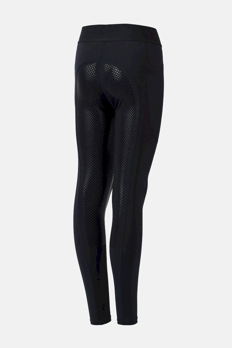 Dziecięce legginsy jeździeckie Horze Maia dobrze sprawdzają się latem dzięki oddychającemu, elastycznemu materiałowi, który daje swobodę ruchu i wygodę w siodle. Sportowy krój i pełny silikonowy lej nadają im nowoczesny wygląd i sprawiają, że są praktycznym wyborem do codziennej jazdy.
