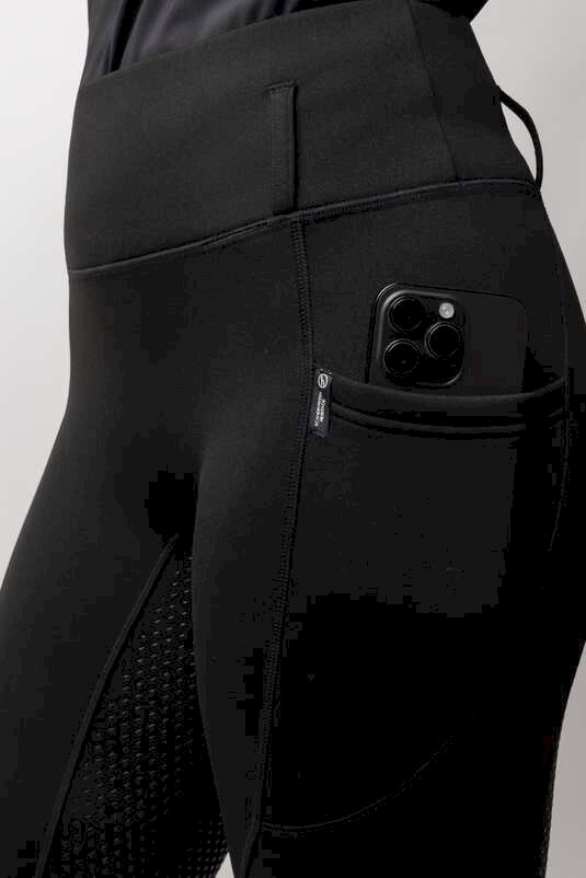 Legginsy jeździeckie Greta wykonane są z nowoczesnego materiału, mocno elastycznego, który podąża za ruchem jeźdźca zapewniając maksymalny komfort podczas jazdy. Wysoki stan z szerokim pasem nie uciska oraz zapobiega zsuwaniu się bryczesów. Bryczesy idealnie sprawdzą się w okresie jesienno-zimowym z uwagi na ciepłe podszycie polarowe.