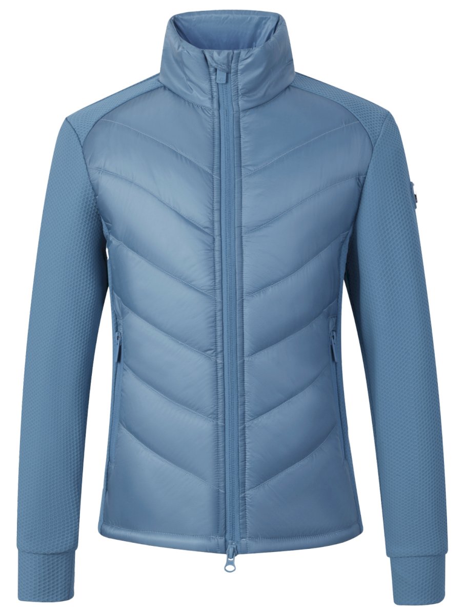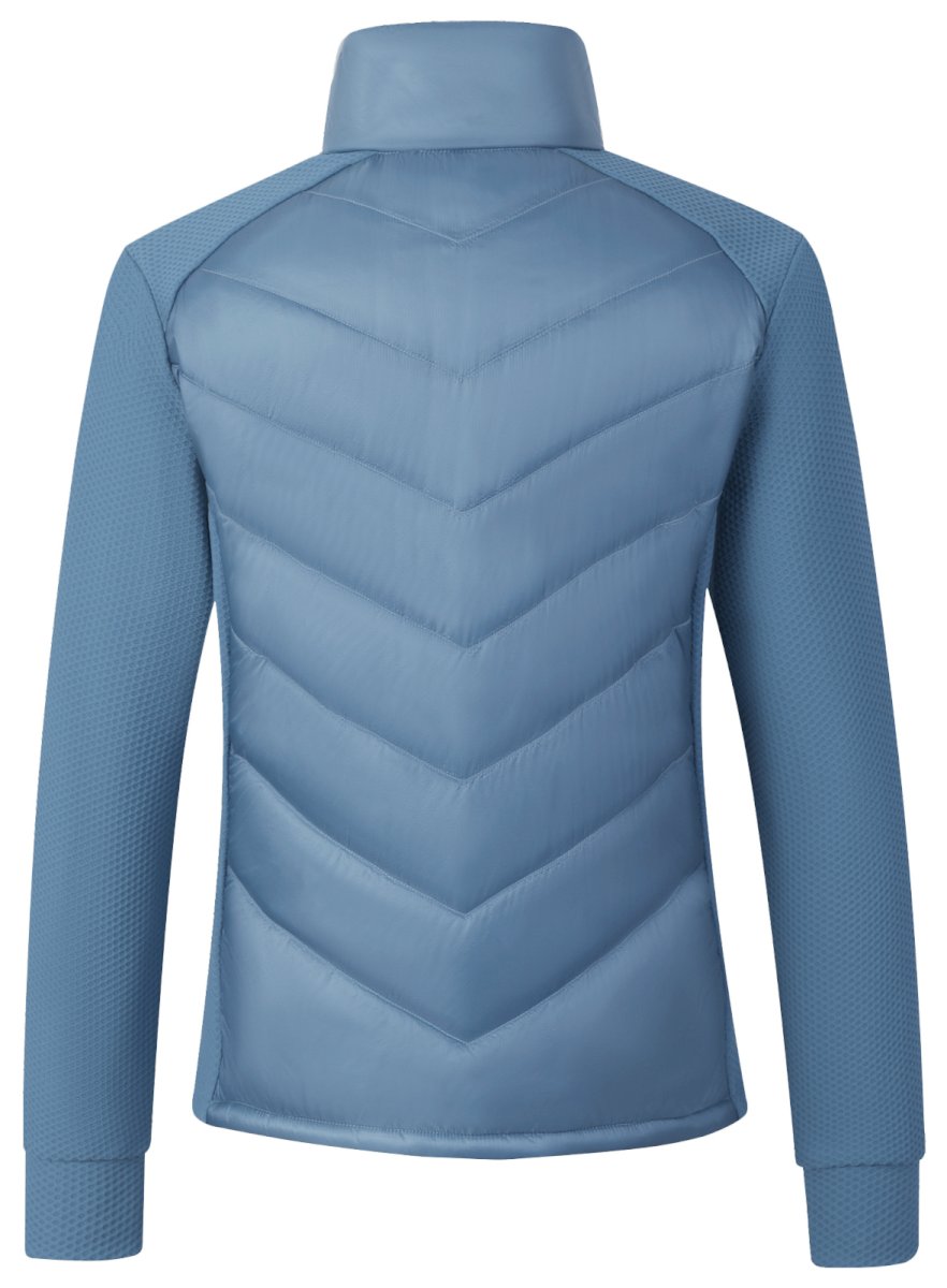 Ta kurtka łączy praktyczność ze sportowym wyglądem. Pikowany przód daje przyjemne dogrzanie, a elastyczne, siatkowe wstawki po bokach pomagają oddychać i nie krępują ruchu – przy czyszczeniu konia, na rozprężalni i w siodle. To dobry wybór na zmienną pogodę: lekka, wygodna i łatwa do zestawienia z resztą stroju.