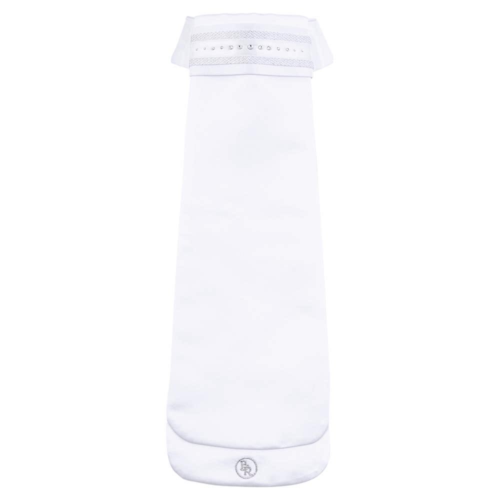 Reprezentacyjny plastron wykonany z pięknej błyszczącej satyny. Plastron ozdobiono na środku srebrną brokatową siateczką i satynowym paskiem z imitacjami diamentów. Na dole plastrona umieszczono haftowane logo BR w kolorze srebrnym.