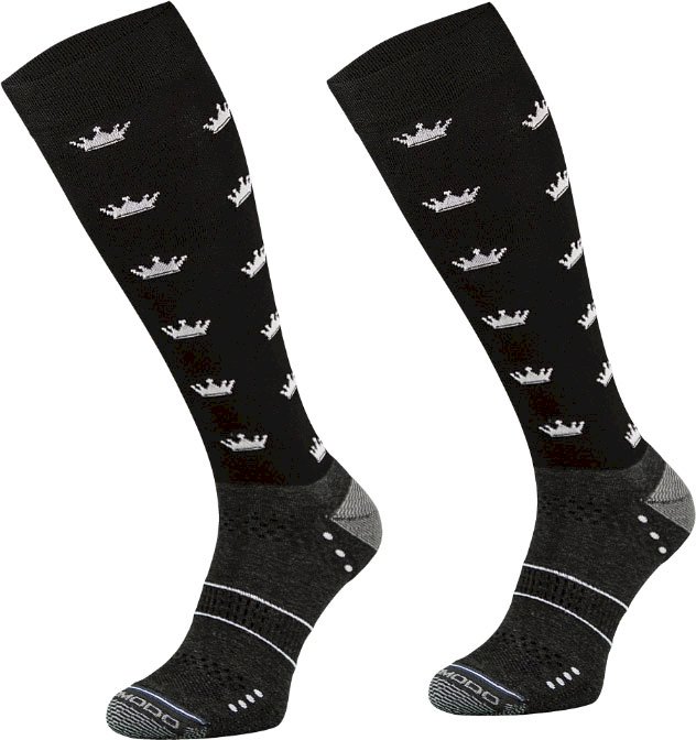 Cienkie podkolanówki jeździeckie z mikrofibry, czarne w białe korony