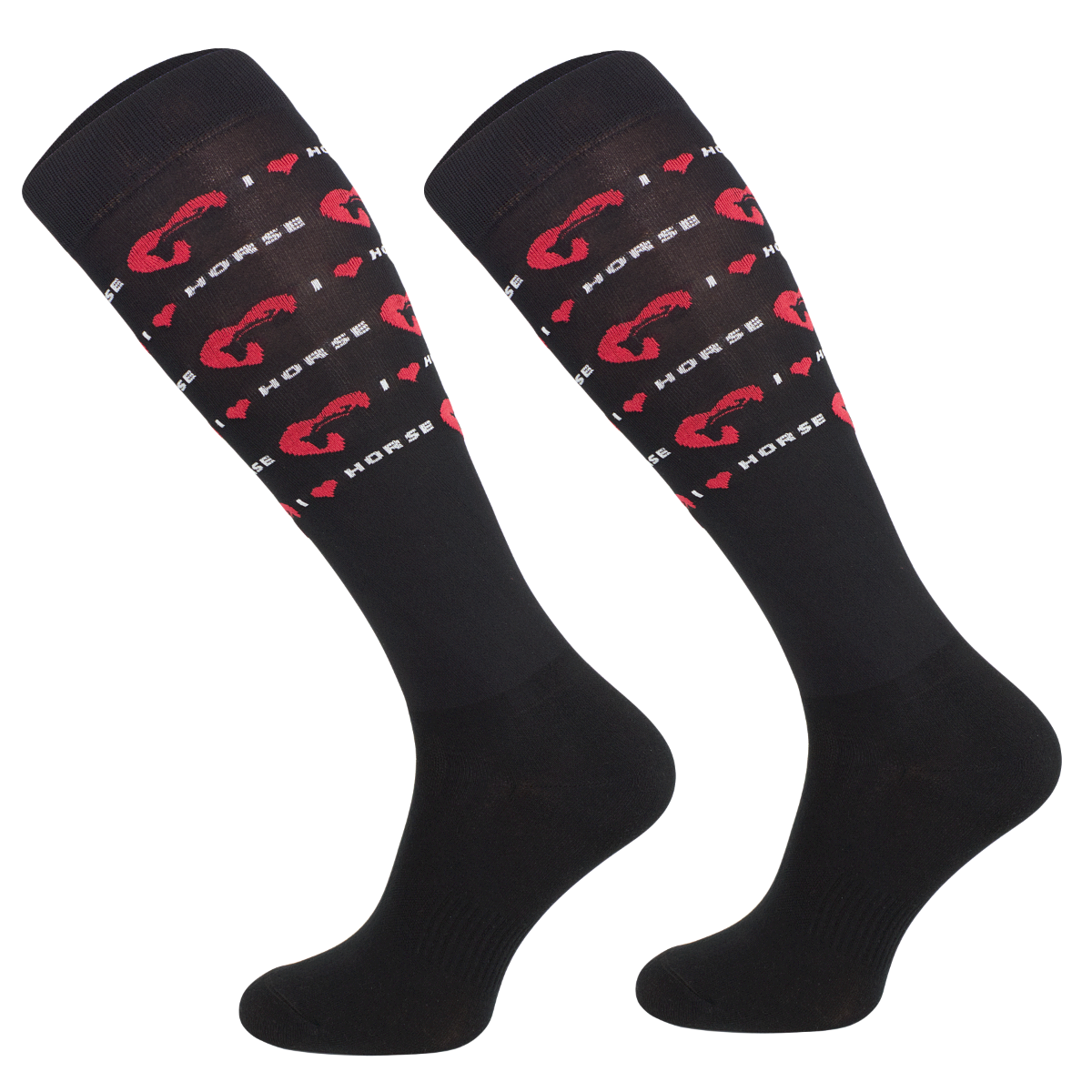 Podkolanówki jeździeckie funkcyjne na lato, czarne/love horses