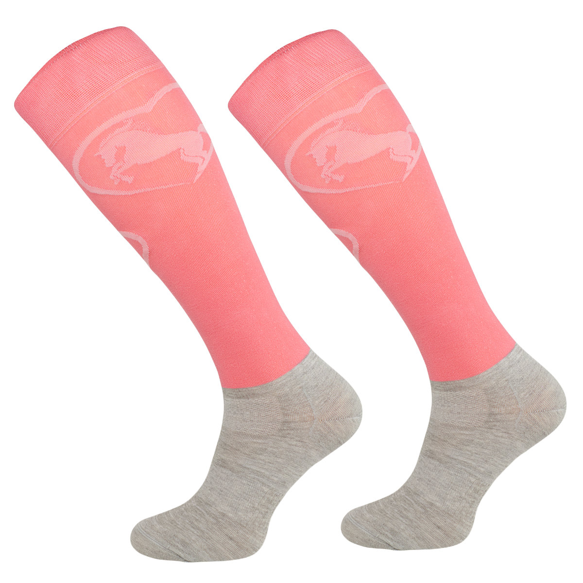 Podkolanówki jeździeckie funkcyjne na lato, łososiowe/koń w sercu