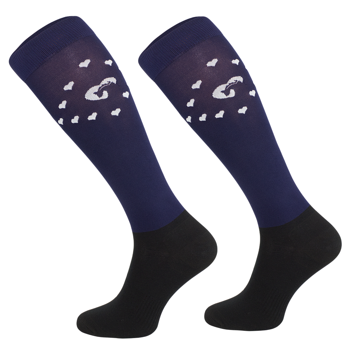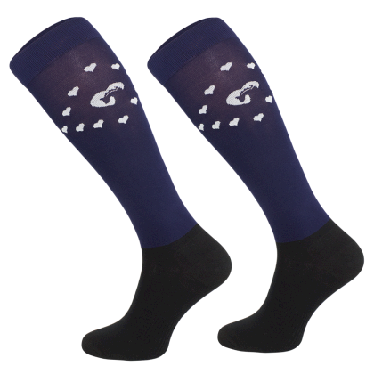 Podkolanówki jeździeckie oddychające na lato, granatowe/hearts