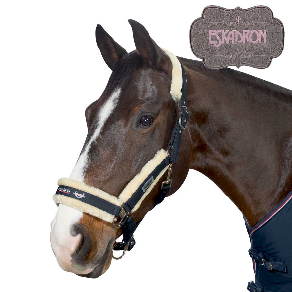 Kantar Eskadron Classics Sports wiosna-lato 2017 - wysokiej jakości kantar z podwójną regulacją i miękkim podszyciem z futerka syntetycznego, niekłopotliwy w praniu, zapięcia na sprzączki, ładne okucia z napisem Eskadron, podwójne taśmy 25mm odporne na rozdarcia.