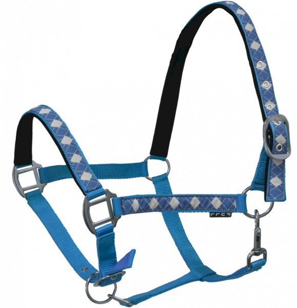 Elegancki kantar w romby. Wykonany z mocnego nylonu z miękkim podszyciem. Podwójna regulacja, w części potylicznej i nachrapnikowej. Wytrzymałe sprzączki.