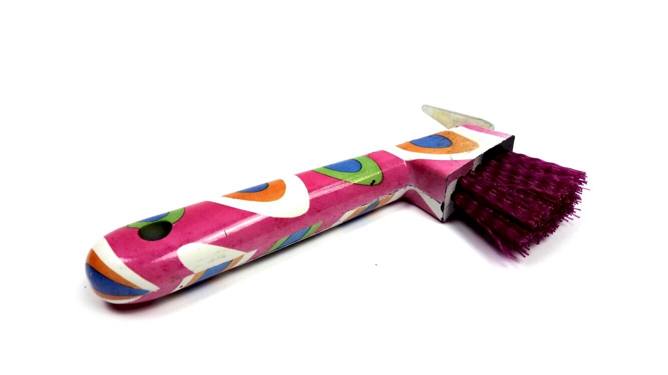 Kopystka ze szczoteczką, ozdobiona wielokolorowym nadrukiem. Dobrze leży w dłoni.