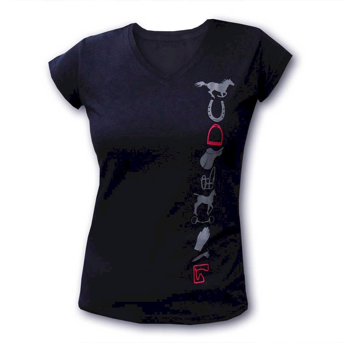 Damska koszulka typu T-shirt zdobiona atrakcyjnym nadrukiem z motywami jeździeckimi. Koszulkę wykonano z miękkiej bawełny idealnej na letnie upały.