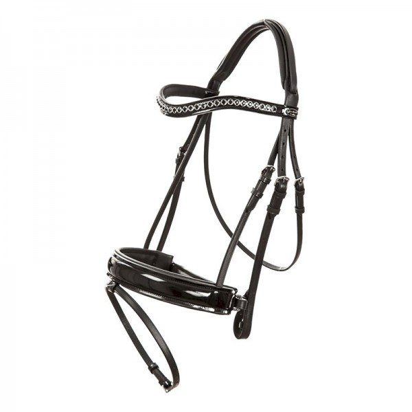 Nachrapnik jest lakierowany, naczółek jest ozdobiony czarnymi kamykami oraz również lakierowany.