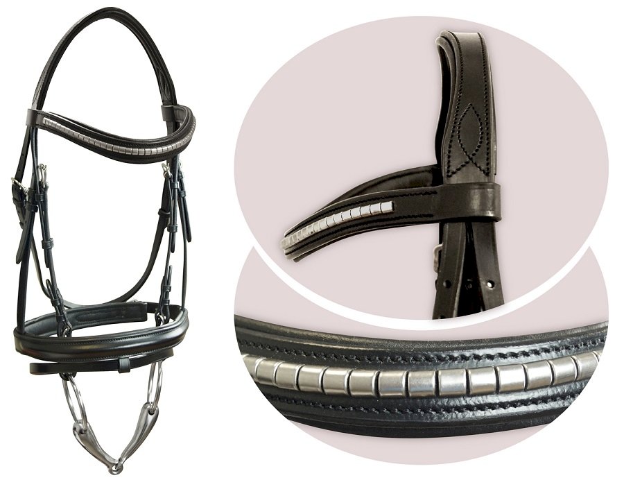 * posiada miękko podszyty kombinowany nachrapnik, naczółek i pasek potyliczny