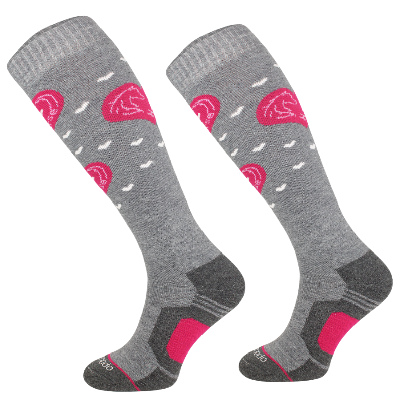 Podkol. wełna merynosów SJWZ/22 szare/różowe serce 35-38