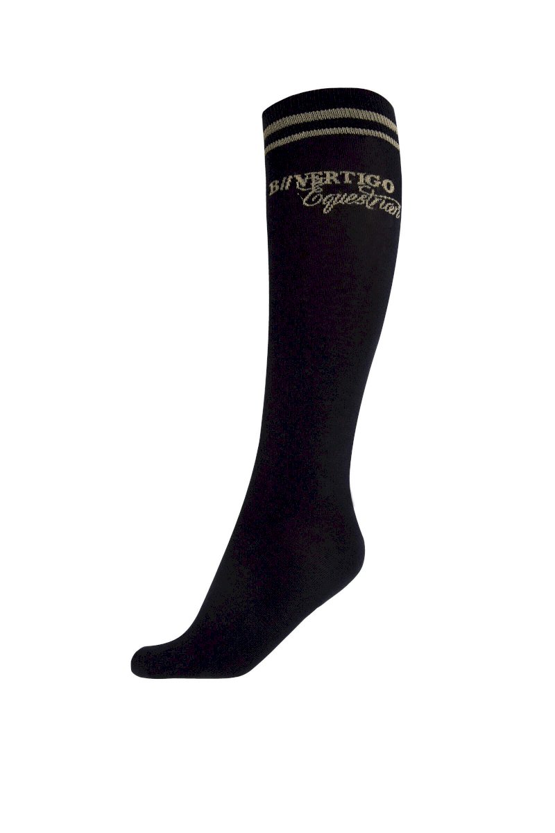 Te wygodne podkolanówki to obowiązkowy element garderoby każdej amazonki. Wzmocnione palce i pięta. Elegancki design z logo B Vertigo z tyłu i dwoma paskami w kontrastowym kolorze u góry.