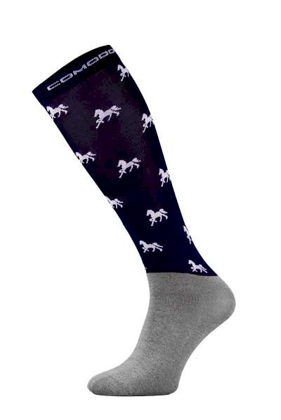 Podkolanówki jeździeckie Microfibre, granatowe w białe koniki