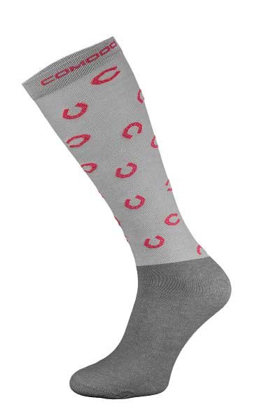 Podkolanówki jeździeckie Microfibre, popielate w różowe podkowy