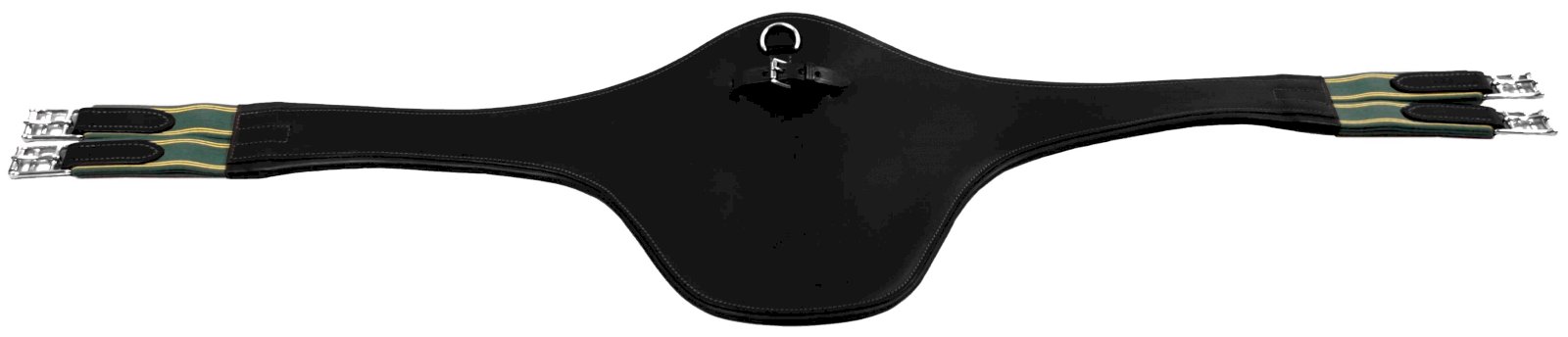 Ekskluzywny popręg skokowy oferujący maksimum bezpieczeństwa przy pełnej swobodzie ruchów. Wyposażony w fartuch chroniący brzuch konia przed uderzeniem podkowami, czy kopytami w trakcie skoku. Dodatkowe kółko na środku popręgu ułatwia użycie wytoka lub napierśnika. Zakończony z dwóch stron elastycznymi gumami.