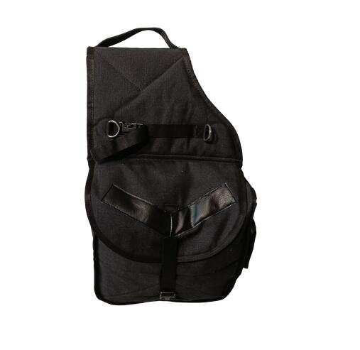 Sakwa została zaprojektowana z myślą o praktycznym użytkowaniu w terenie. Liczne paski, klamry i metalowe kółka pomagają stabilnie przymocować ją do siodła oraz zabezpieczyć przewożone rzeczy.