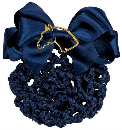 *eleganckie klamry z siatką na włosy i kokardą, ozdobione dodatkowo broszką z końskim motywem, będą się wspaniale prezentować na każdych zawodach