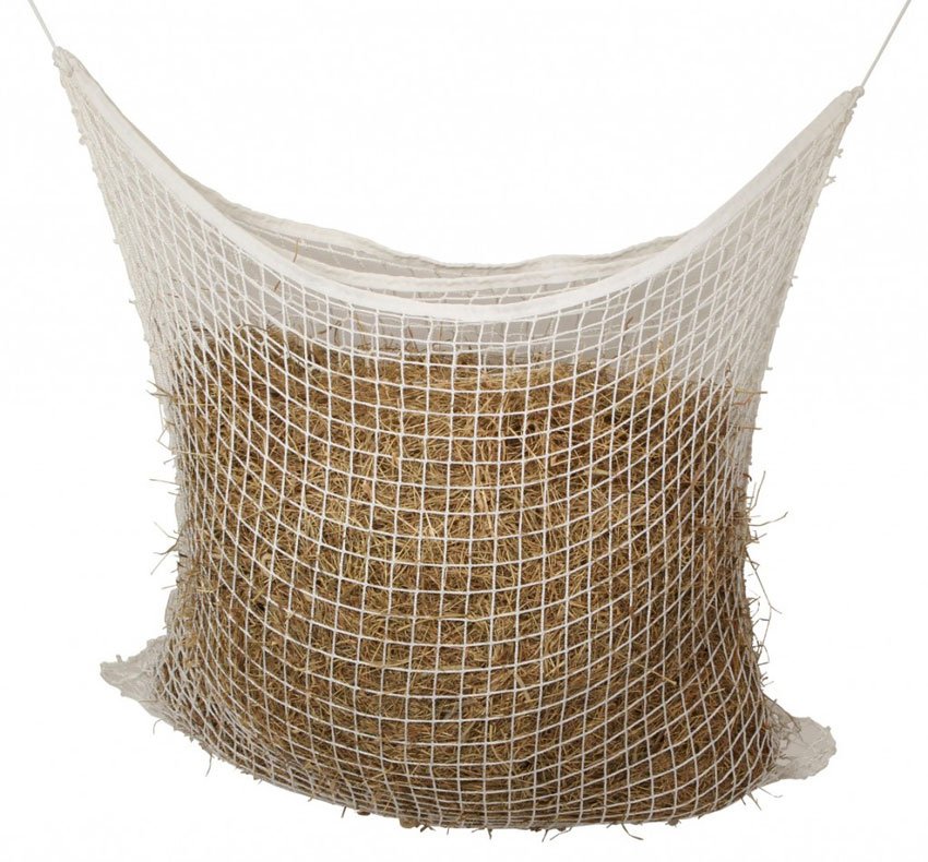 Pojemna siatka na siano z małymi oczkami. Wielkość oczek 3cmx3cm