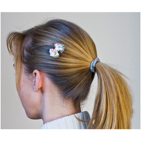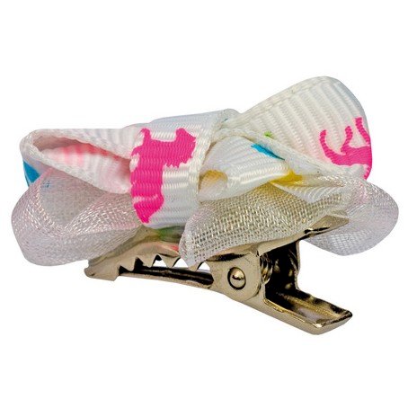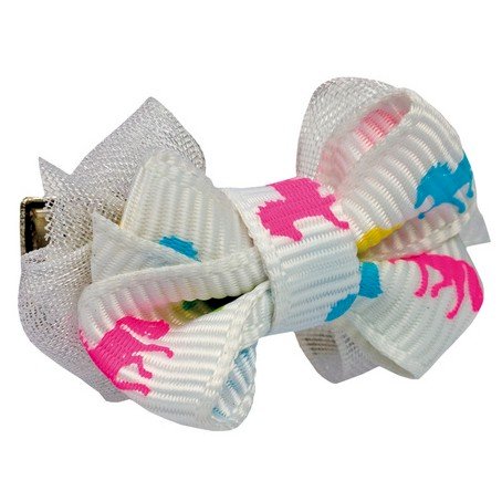 *spinka ozdobiona wstążeczką z kolorowymi konikami