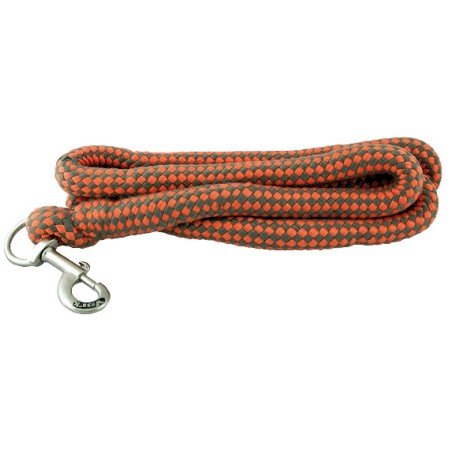 Gruby dwukolorowy bawełniany uwiąz z karabińczykiem w srebrnym satynowym kolorze.