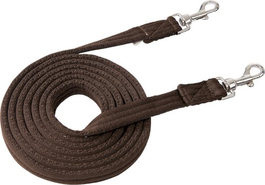 Ekonomiczne wodze wykonane z miękkiej taśmy parcianej, zakończone karabinkami.