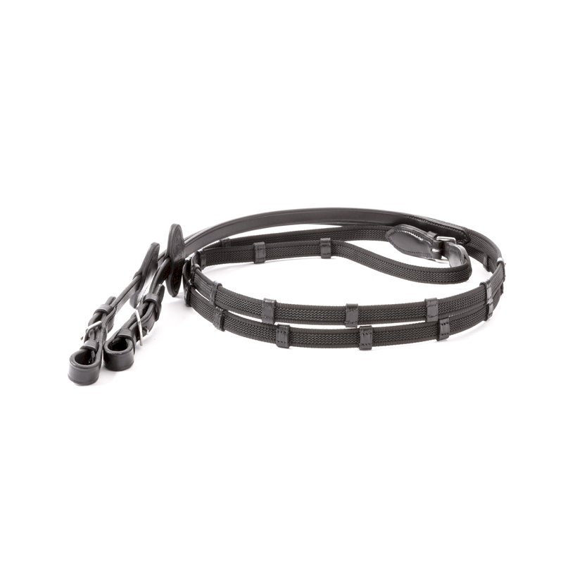 Wodze gumowane Kavalkade grip z podwójną ilością stoperów, czarne