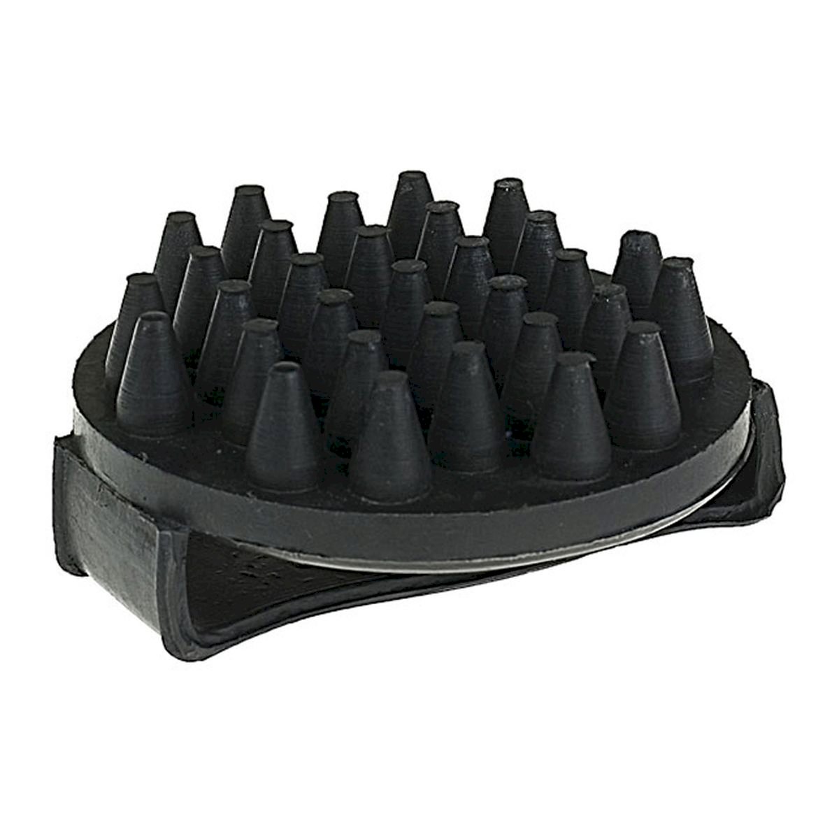 Zgrzebło z długimi gumowymi kolcami. Gumowy uchwyt ułatwia trzymanie.