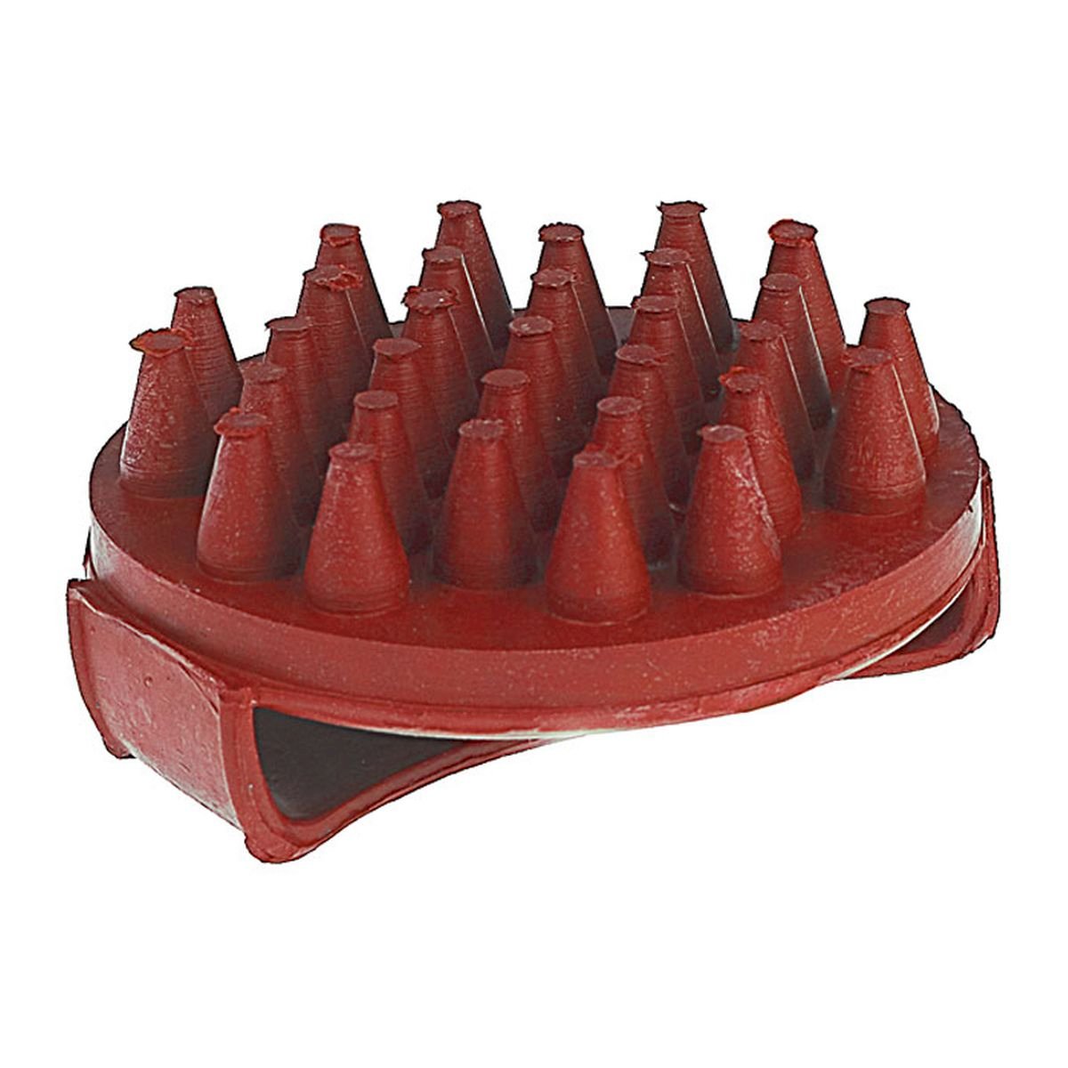 Zgrzebło z długimi gumowymi kolcami. Gumowy uchwyt ułatwia trzymanie.